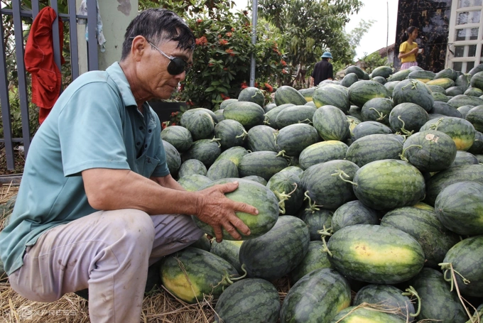Hơn 8 tấn dưa hấu được ông Tám ở Quảng Nam thu hoạch đưa về nhà để bán. Ảnh: Đắc Thành