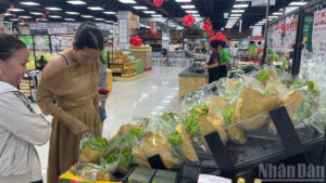 Người tiêu dùng mua rau xanh tại Lotte Mart Phan Thiết.
