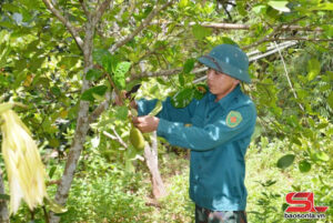 Nông dân bản Nà Ngà, xã Chiềng Hặc chăm sóc cây ăn quả.